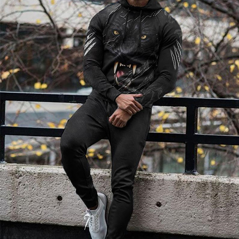 Men's Tracksuit Outfit Set Hoodies Set Hoodie Outdoor Daily Sports Pocket Drawstring Camo / Camouflage Navy Blue Green Grey Graphic Print Polyester Activewear Fashion Streetwear Fall