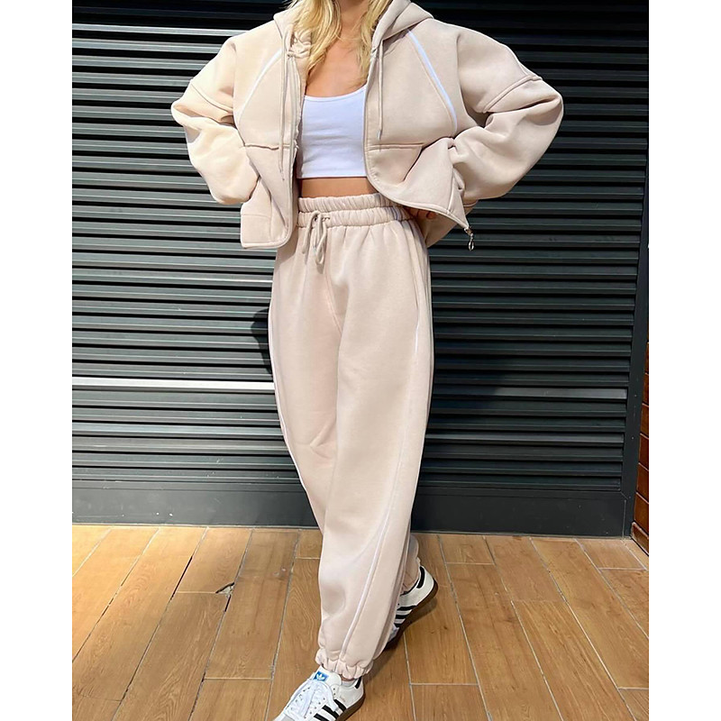 Women's Tracksuit Sweatpants Pullover Sweatshirt Zipper Pocket Solid Colored Clothing Suit Spring Black Pink Gym Training Running Windproof Long Sleeve Sport Activewear Micro-elastic Regular Fit