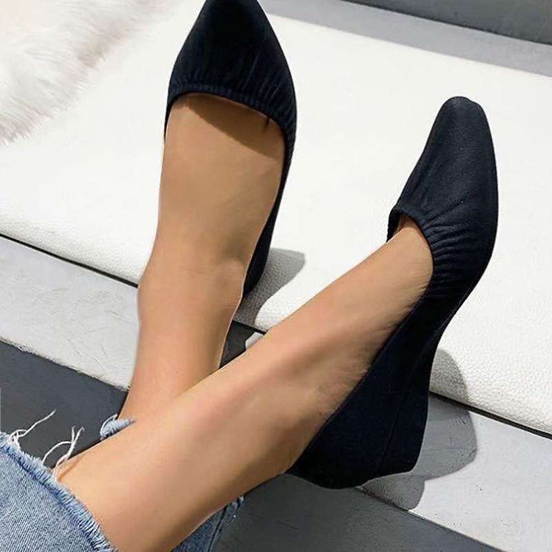 Women's Navy Blue Pointed-Toe Wedge Flats with Elastic Topline, Lightweight Slip-On Comfort Shoes for Daily Work, Commute, and Office Wear