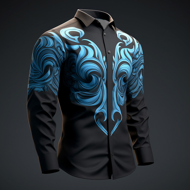 Men's Shirt Button Up Shirt Long Sleeve Artistic Daily Wear Going out Fall Winter Turndown Print Button-Down Light Blue Yellow Dark Green Purple Green