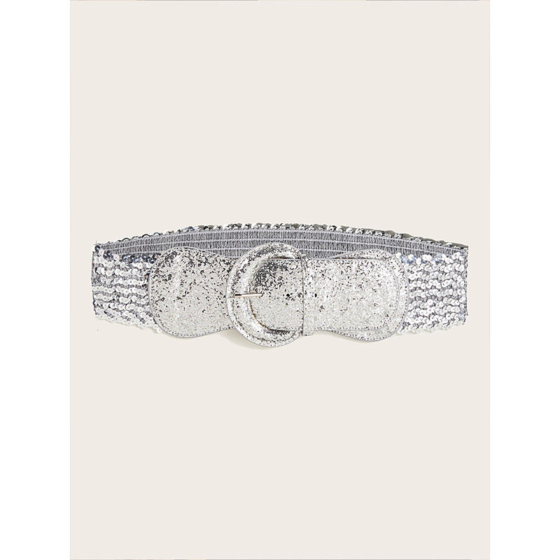 Women's Elastic Faux Leather Sequin Belt - Sparkling Gold, Perfect for Christmas and Holiday Parties