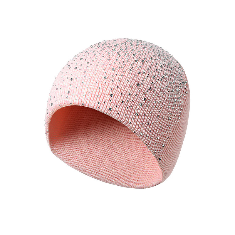 Women's Knitted Polyester Beanie Hat, Rhinestone Decor, Available in Multiple Colors, Perfect for Winter Fashion
