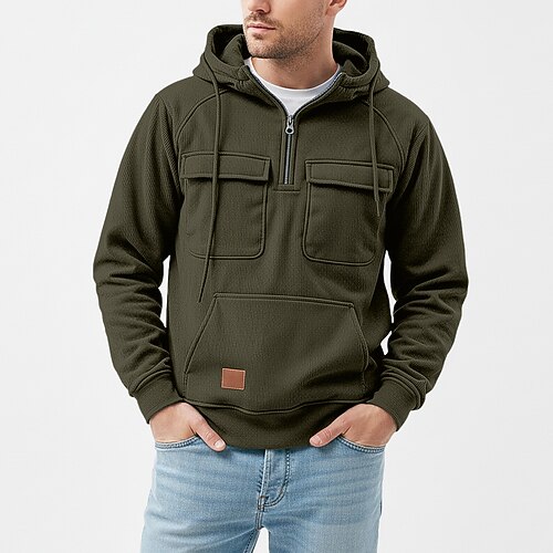 Per uomo Maglione Felpa con cappuccio e zip corta Vino Blu marino Verde Grigio Azzurro Con Cappuccio Grafico Tasca Casuale Quotidiano Streetwear Casual Autunno Inverno Abbigliamento Felpe con