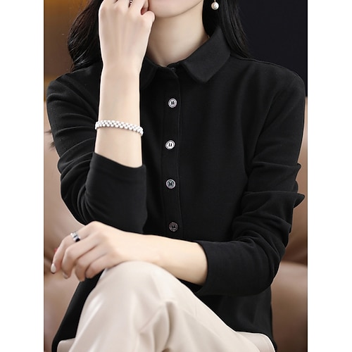 Per donna Blusa Tinta unica Elegante Classico Casual Manica Lunga Colletto a Camicia Top Regolari Quotidiano Bottoni Nero Rosa Vino Blu marino Cammello Primavera Autunno Inverno
