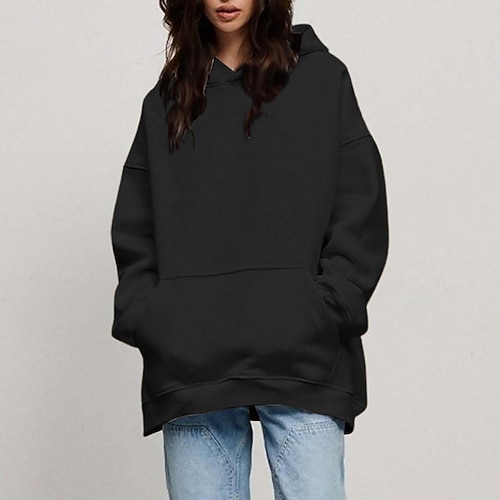 Per donna Pullover Felpe con cappuccio Semplice Moda Classico Moderno Manica Lunga Con Cappuccio Top Regolari Streetwear Abbigliamento Quotidiano Blu Nero Bianco Rosa Vino Primavera Autunno