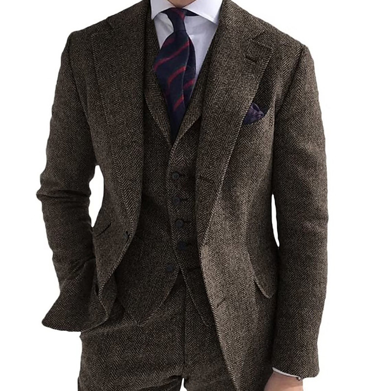 Men's BlazerVestDress Pants Blazer Jacket Business Work Party Elegant Vintage Fall Winter Nylon Solid Color Single Breasted Blazer Silver Black Pink Burgundy