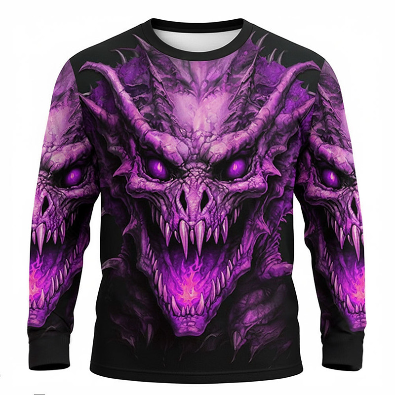 Dragon T Shirt Men 3D Printed Fire Breathing Monster Long Sleeve Gothic Fantasy Pullover Tee Top Clothing Apparel S M L XL XXL XXXL