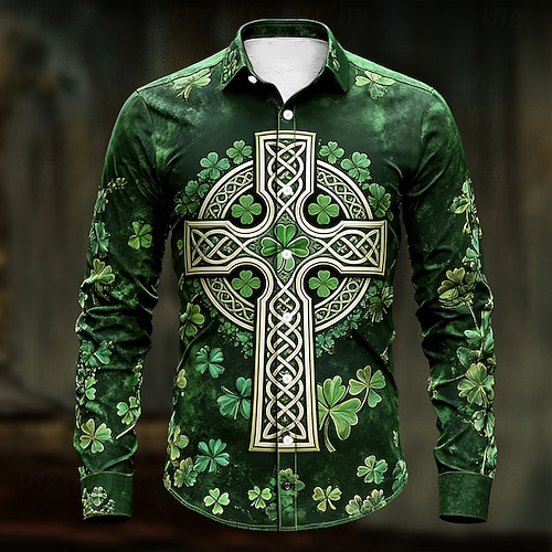 Festa di San Patrizio Per uomo Quadrifoglio Trifoglio Croce celtica Camicia Camicia con Bottoni Manica Lunga Vintage Retrò Feste Ferie Primavera Autunno Collo ripiegato Stampa 3D camicie con colletto