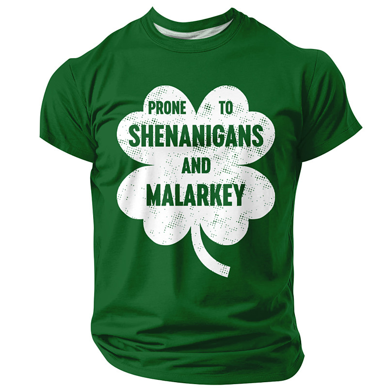 St Patricks Day Prone To Shenanigans And Malarkey T Shirt Funny Irish Clover Leaf Graphic Tee Men Lucky Green Holiday Party Top Clothing Apparel S M L XL XXL XXXL