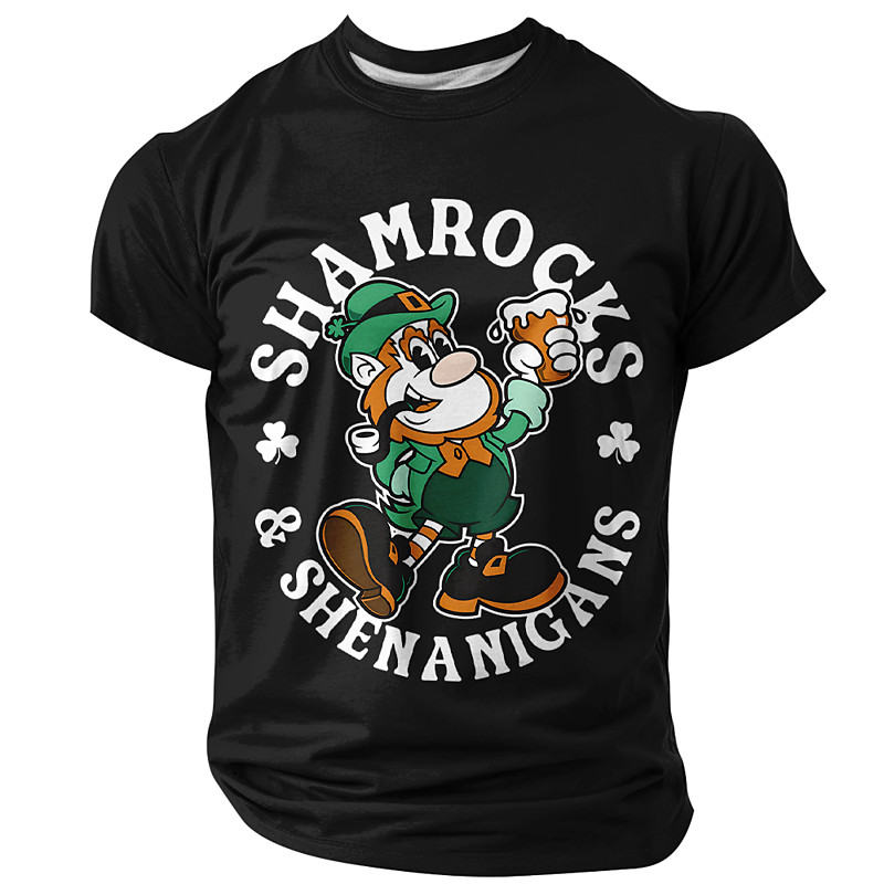 St Patricks Day Shamrocks and Shenanigans T Shirt Funny Retro Leprechaun Beer Graphic Tee Men Irish Lucky Clover Vintage Cartoon Party Top Clothing Apparel S M L XL XXL XXXL