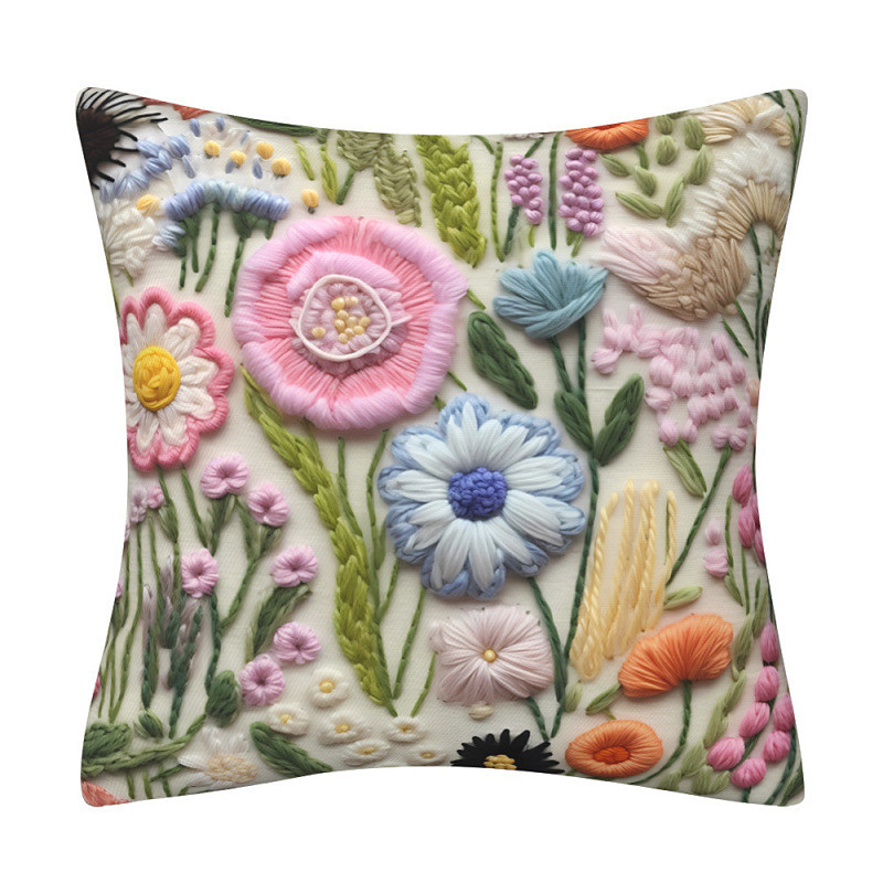 Floral Pillow Cover 2D Flat Print Decorative Cushion Case with Faux embroidery Soft Polyester Fabric for Sofa Bedroom Living Room Home Decor