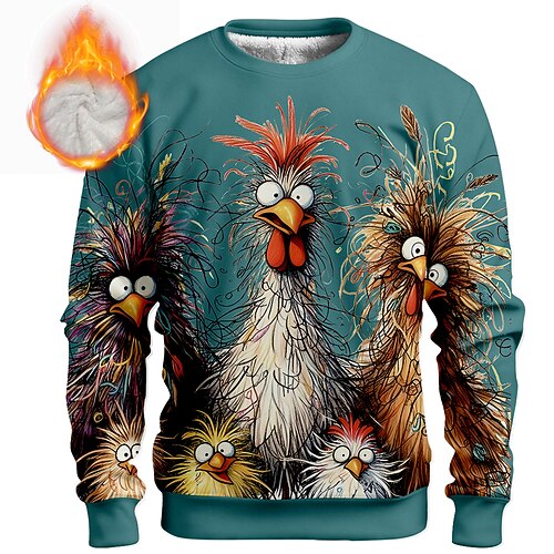 Per uomo Gallo Scontroso Pile Felpa Quotidiano Casual 3D Girocollo Casa Feste Regalo Abbigliamento casual alla moda Blu chiaro azzurro cielo Nero Bianco Rosso Stampa 3D Autunno Inverno progettista S