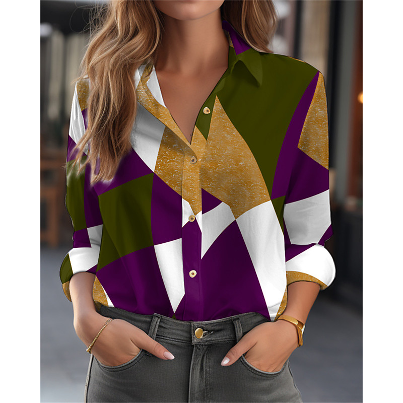 Women's Shirt Long Sleeve Button Down Blouse Fashion Geometric Buttons Print Regular Tops Shirt Collar Casual Red Blue Purple Green Spring Fall