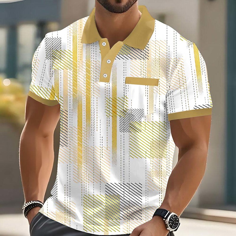 Men's Geometic Polo Short Sleeve Polo Shirts Collared Shirts Casual Outdoor Athleisure Daily Wear 3D Print Buttons Spring Summer Blue Yellow Red