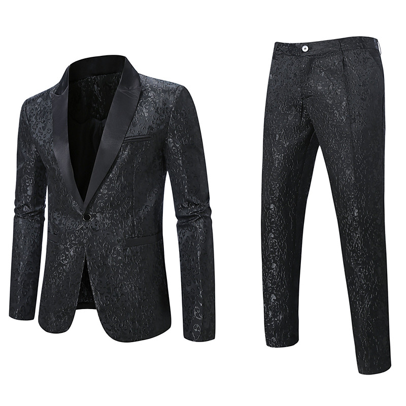 Black White Burgundy Men's Wedding Party/Evening Suits Solid Colored 3 Piece Formal Standard Fit Single Breasted One-button