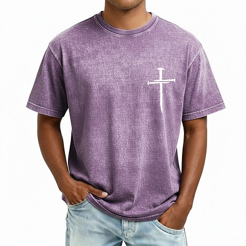 T-shirt croce della Bibbia da uomo maglietta a maniche corte acid wash collo giro vintage retro casual spiaggia viaggio blu viola grigio estate primavera abbigliamento