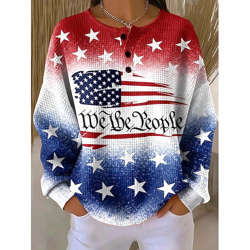 Giorno dell'Indipendenza Felpe Patriottiche da Donna Stampa Grafica Lettera Moda Casual Stampa Maniche Lunghe Collo A Giro Top Regolari Casual Strada Bottoni Blu Giallo Rosso Viola Primavera Autunno
