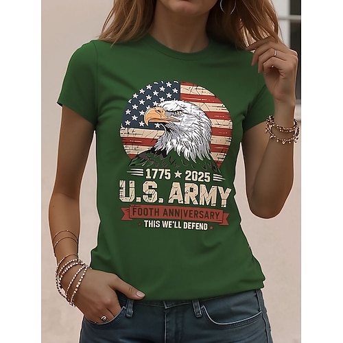 Maglietta Donna Patriottica Americana Festa dell'Indipendenza Stampa Grafica Bandiera Americana Vintage Elegante Classica Maniche Corte Girocollo Giro Regolari Tops Quotidiani Weekend Nero Verde