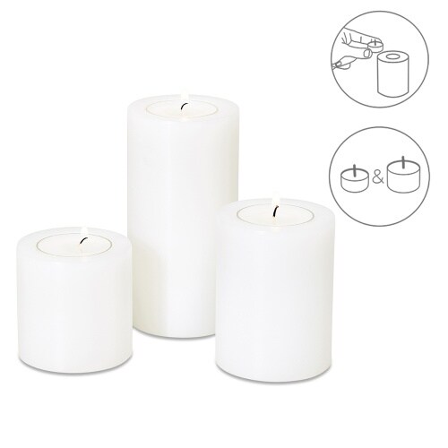 EDZARD 3er-Set Dauerkerze Cornelius (Höhe 6/8/10 cm, ø 6 cm), weiß, Teelichthalter hitzebeständig 90°