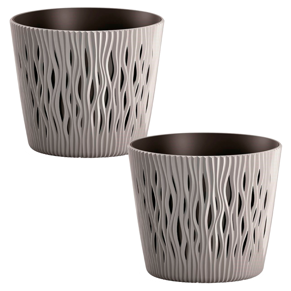 WellHome - Set mit 2 Pflanztöpfen 0,9L Sandy Round Ø12 cm/Stück in Grau