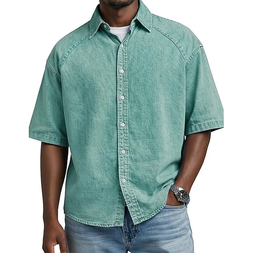 Per uomo Camicia Camicia button-down Camicia casual Camicia 100% cotone lavaggio acido Nero Verde chiaro Rosa Verde scuro Viola Manica Corta Semplice Bavero Quotidiano All'aperto Bottoni Abbigliamento