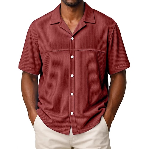Per uomo Camicia Camicia button-down Camicia di Velluto a Coste Blu Nero Bianco Rosso Blu marino scuro Manica Corta Semplice Bavero Quotidiano All'aperto Bottoni Abbigliamento Streetwear Casual