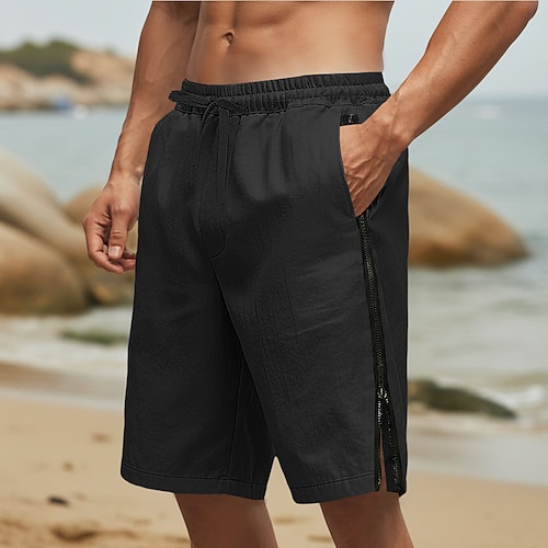 Herren Shorts Leinenshorts Sommershorts Strandshorts Kordelzug Elastischer Bund Einfach Komfort Atmungsaktiv Kurz Täglich Outdoor Strand Urlaub Mode Blau Schwarz Unelastisch