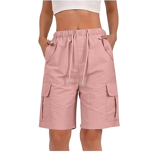 Damen Bermudashorts Cargo-Shorts Chinos Shorts Urlaub Streetwear Lässig Kurz Mittlere Taillenlinie Einfach Kordelzug Tasche Bequem Unelastisch Täglich Outdoor Urlaub Weinrot Aprikose Dunkelgrau