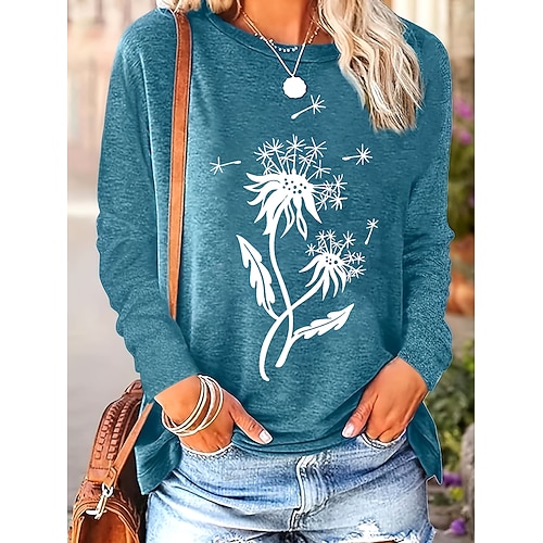 Per donna Maglietta Floreale Grafico Piante Vintage Elegante Classico Manica Lunga Girocollo Top Regolari Quotidiano Stampato Nero Rosa polverosa Blu turchese Cachi Estate Primavera Autunno