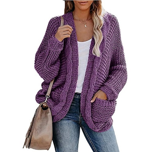 Per donna Felpa Cardigan Elegante Moda Streetwear Colore Puro Aperto davanti Tasca Lavorato a maglia Manica Lunga Top Regolari Maglia All'aperto Quotidiano Weekend Nero Rosso Autunno Inverno