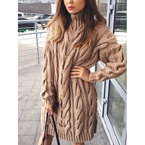 Per donna Felpa Abito maglione Casual Morbido Colore Puro A Coste Girocollo Lavorato a maglia Manica Lunga Top lunghi Maglia All'aperto Quotidiano Weekend Nero Verde Autunno Inverno