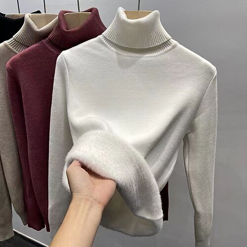 Per donna Felpa Maglione Elegante Streetwear Casual Tinta unica Dolcevita Lavorato a maglia Manica Lunga Top Regolari Maglia Ferie Uscire Nero Bianco Autunno Inverno