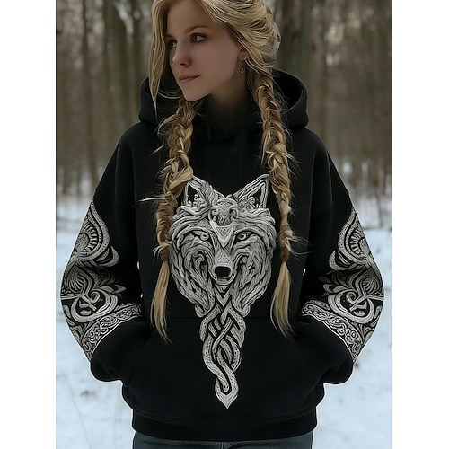 Per donna Felpa con cappuccio Grafico Animale Tribale Vintage Casual Boho Manica Lunga Con Cappuccio Top Regolari Casuale Streetwear Abbigliamento Quotidiano Stampato Tasca Frontale Blu Nero Marrone