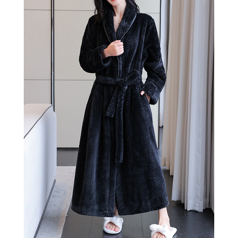 Women's Pajamas Bathrobe Robes Gown Nighty 1PC Pure Color Warm Plush Casual Party Home Daily Fleece Terry V Wire Long Sleeve Modern Style Belt Included Pocket Fall Winter Home Outfits