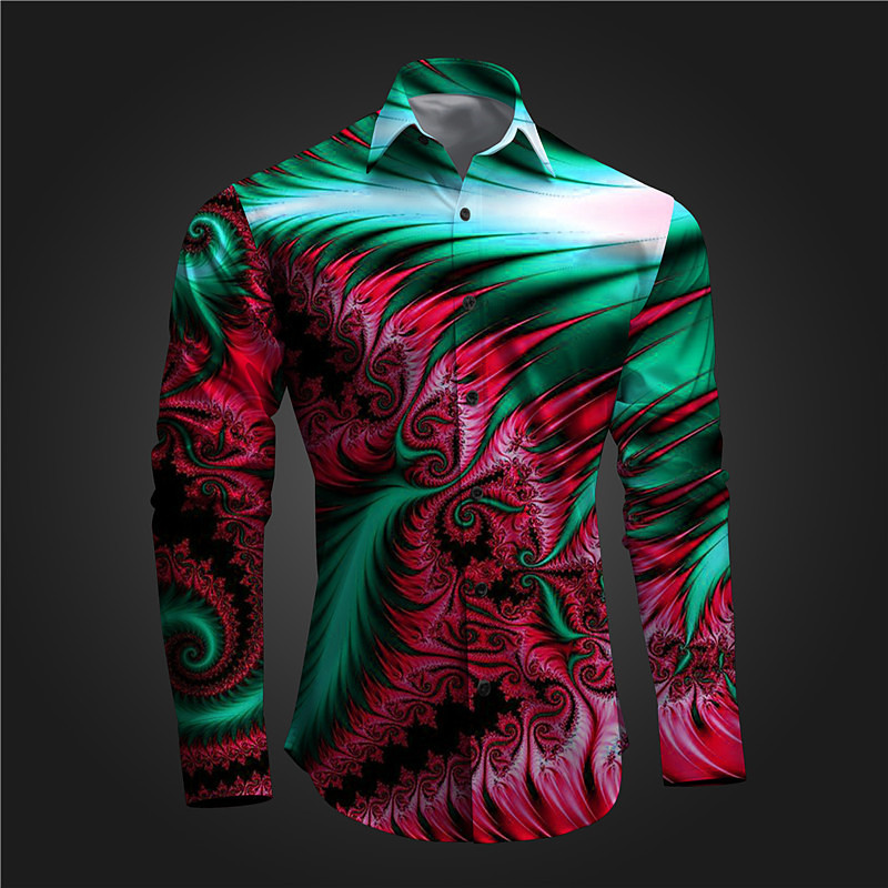 Men's Button Up Shirt Printed Shirts Long Sleeve Subcultural Vacation Party Street Spring Summer Turndown Print Button-Down Red Blue Green