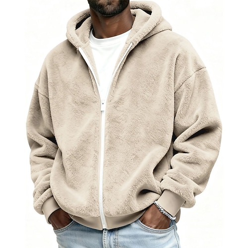 Per uomo Felpa con cappuccio Felpa con cappuccio a zip intera Felpa con cappuccio in pile Felpa con cappuccio foderata in pile Nero Bianco Borgogna Blu marino Blu Reale Con Cappuccio Semplice