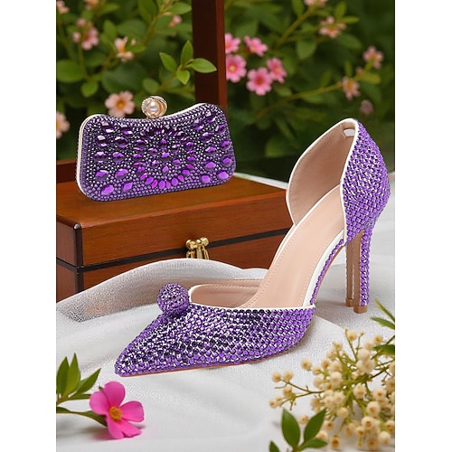 décolleté da donna con tacco quadrato e strass viola - scarpe da festa con punta a punta e glitter per cocktail, eventi e abiti da sera