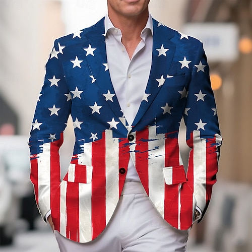 Giorno dell'Indipendenza Americana Per uomo Bandiera Americana Giacca blazer Cappotto Di tendenza Confortevole Traspirante Artistico Casual Casuale Quotidiano Abbigliamento da sera Tasca Stampa 3D