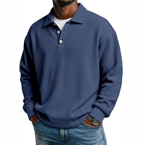 Per uomo Camicia di Velluto a Coste Testurizzato Casuale Sportivo Bavero Manica Lunga Moda Essenziale Tinta unica Bottoni Caldo Autunno Inverno Vestibilità regolare Nero Blu scuro Grigio Blu chiaro