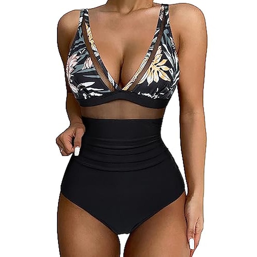Per donna Costumi da bagno Intero Monokini Costume da bagno Rete Controllo della Pancia Vita alta Snello Senza schiena Vacanza Abbigliamento da Spiaggia Blocco di colori Senza Maniche Costumi da bagno