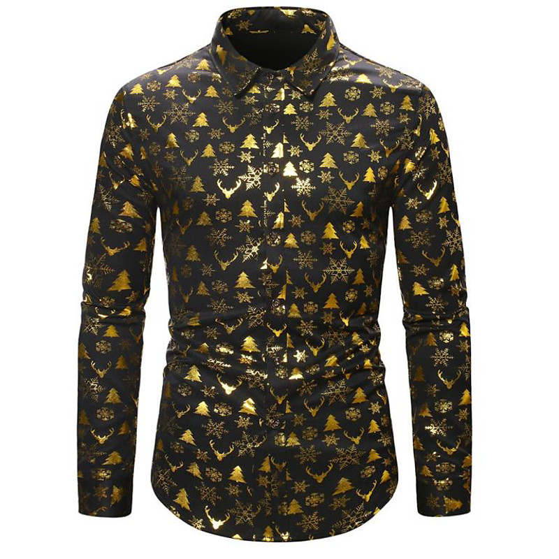 Christmas Men's Funny Christmas Printed Shirts Shirts Santa Claus Turndown WhiteRed Green Black Army Green Red 3D Print Outdoor Long Sleeve Button-Down Print Clothing Apparel Fashion Designer Casual