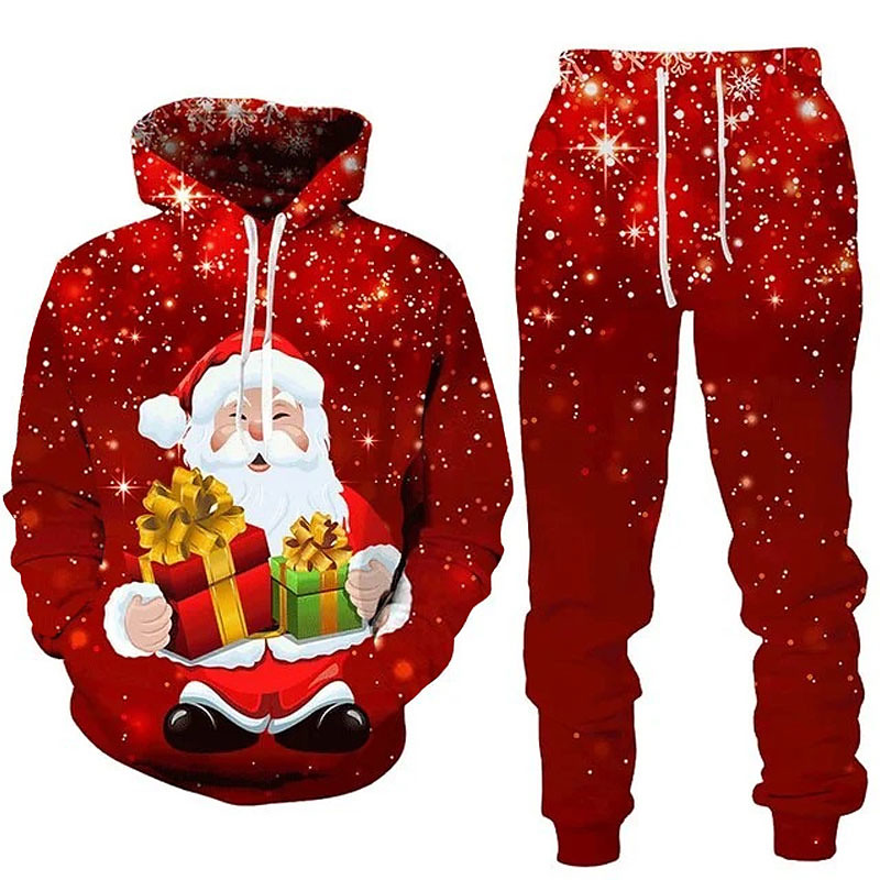 Christmas Men's Santa Claus 3D Hoodies Tracksuit Hoodies Set Red green Black White Red Navy Blue Hooded Graphic Santa Claus Snowman 2 Piece Print Sports Outdoor Casual 3D Print Streetwear Designer