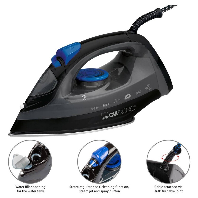 Clatronic DB 3703 Fer à vapeur avec semelle en acier inoxydable 1600 W - Noir