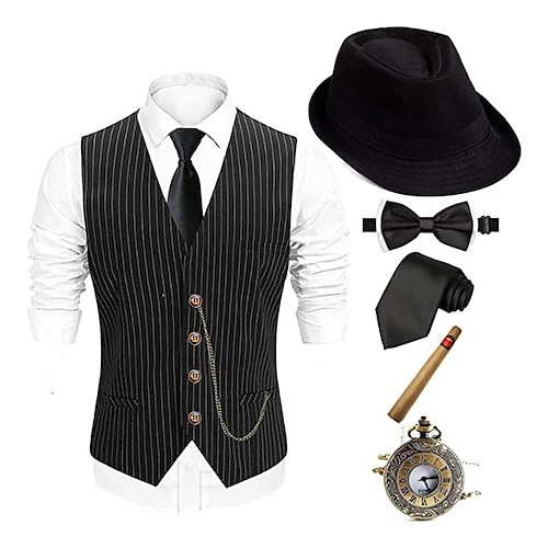 Il grande Gatsby Signore Gangster Retrò vintage Ruggenti anni '20 1920s Completi Gilè Cappello Panama Set di accessori Per uomo Costume Vintage ▾ Cosplay Graduazione Festival Foulard Natale