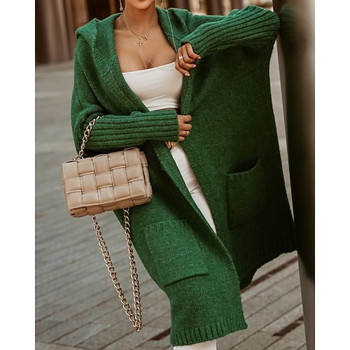 Damen Pullover Strickjacke Streetwear Lässig Einfarbig Zopfmuster Mit Kapuze Tasche Gestrickt Langarm Lange Oberteile Stricken Täglich Ausgehen Wochenende Weiß Rosa Herbst Winter