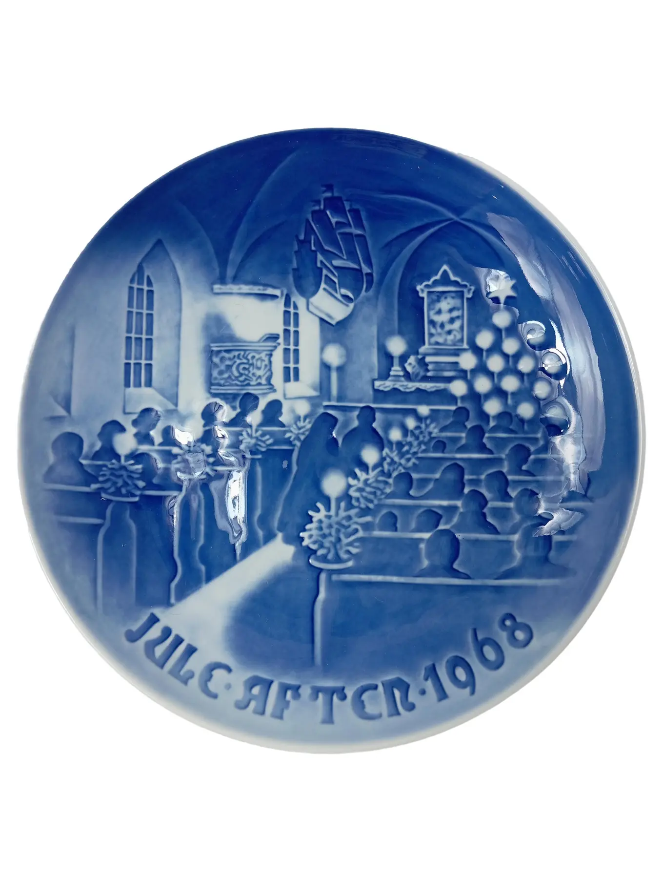BING & GRØNDAHL Wandteller 18 cm blau Kirche Weihnachtsfeier