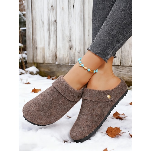 zoccoli da donna in feltro di lana sintetica color caffè con bottoni – comode e calde pantofole da interno ed esterno per passeggiate informali e abbigliamento da casa