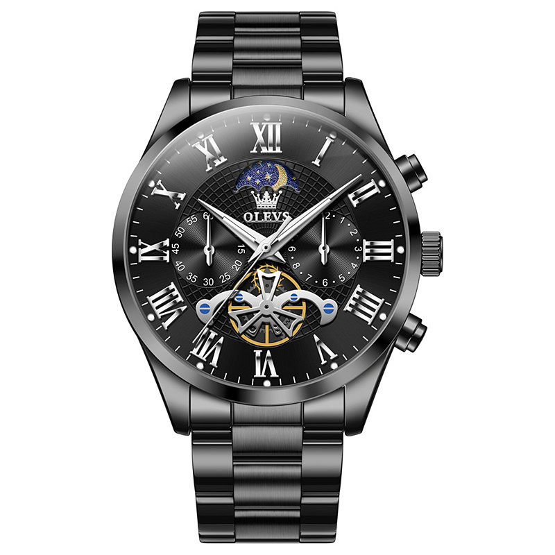 The New Olevs Men'S Business Watch With Luminous Calendar Small Three Hands And Moon Phase Display Multi-Functional Solid Steel Band Quartz Watch Waterproof Sports Men'S Wristwatch