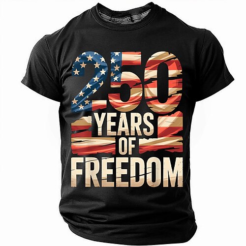 Herren Amerikanische US-Flagge FREEDOM 250. Jahrestag der Vereinigten Staaten T Shirt Kurzarm T-Shirt 3D-Druck Rundhalsausschnitt Hemd Täglich Militär Straße Täglich Blau Schwarz Rote Sommer Frühling