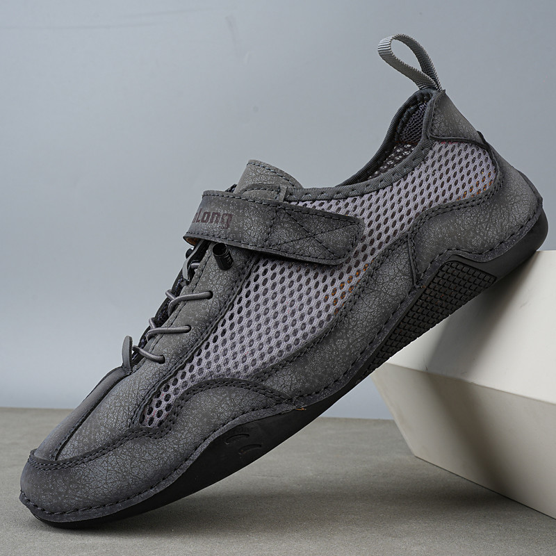 Men's Tan Slip-on Mesh Sneakers with Velcro Strap - Easy-to-wear, Comfortable Footwear for Outdoor Activities and Casual Outings